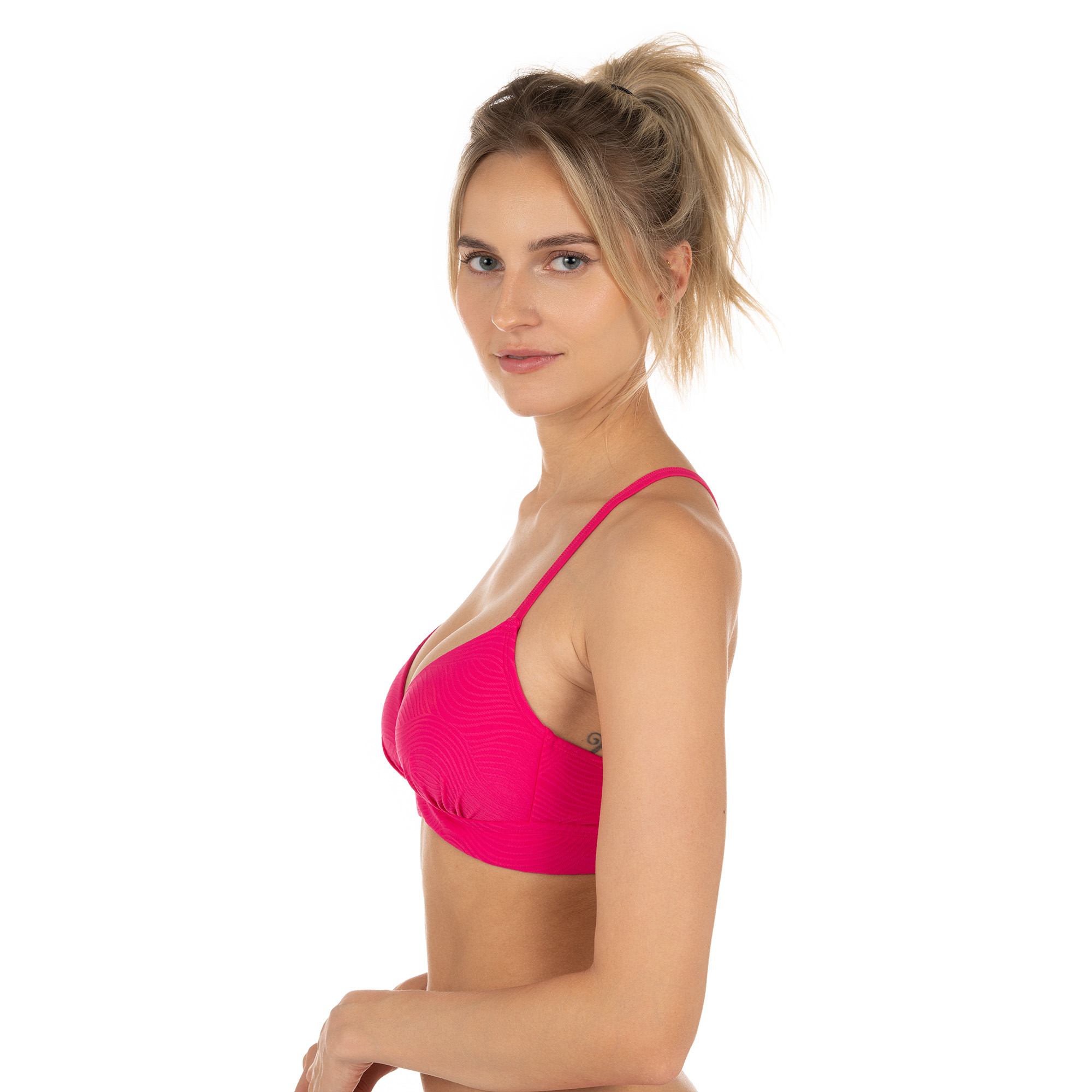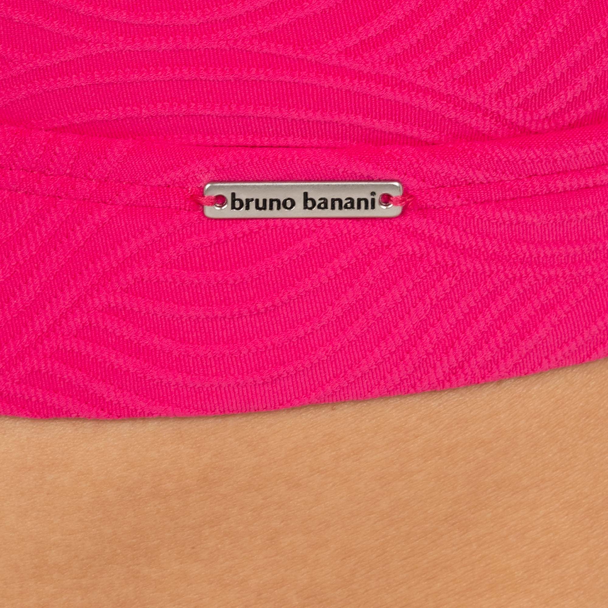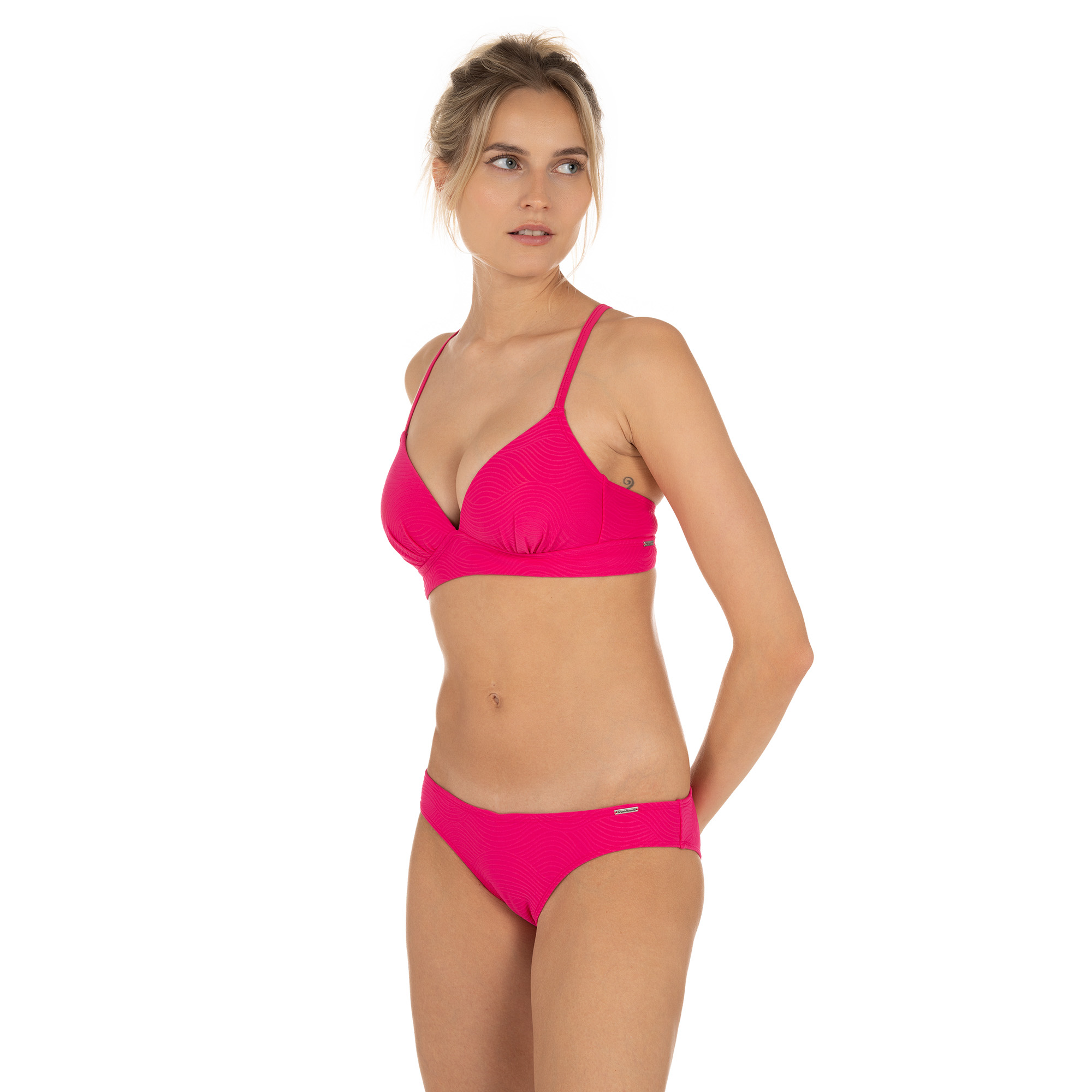 The Cres padded triangle bra from bruno banani combines a modern design with maximum comfort. The soft padded cups gently shape the décolleté, while the underwired design ensures a natural feel. The fine, textured surface gives the top a sophisticated look that is perfectly accentuated by the bright colour. The fixed, non-adjustable straps run elegantly over the shoulders and cross at the back, where a practical fastener ensures a secure fit. The elasticated material fits perfectly and makes this bikini the ideal companion for sunny days full of lightness. Perfect for mixing and matching with different bikini bottoms for a personalised style.
