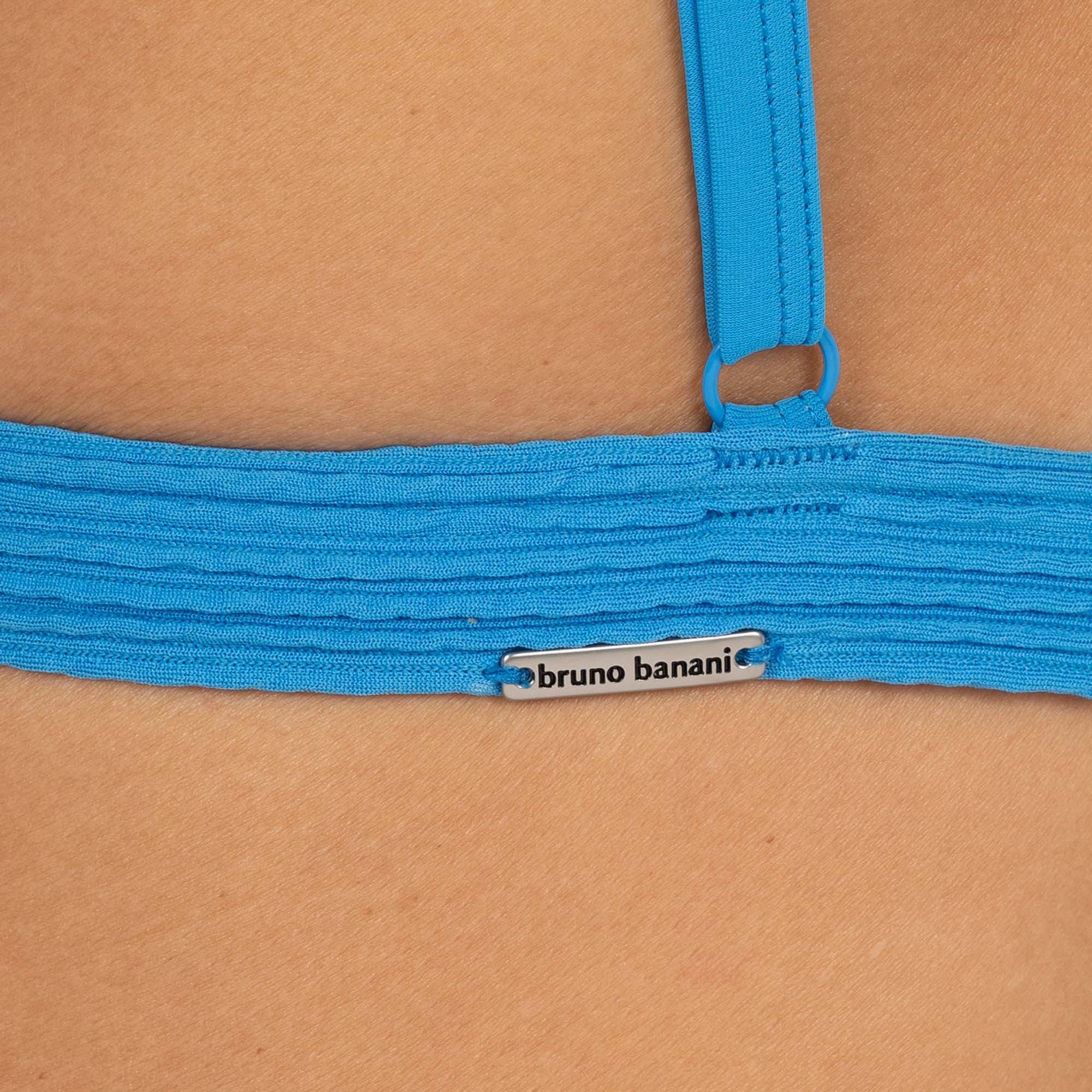 Der Padded Triangle Bra Cabrera von bruno banani überzeugt mit seinem modernen Design und einer besonderen Haptik. Die weich gepolsterten Cups sorgen für eine natürliche Form und angenehmen Halt, während die Polsterung herausgenommen werden kann – für ein individuelles Tragegefühl. Das Material ist weniger elastisch, dafür fester und etwas dicker, wodurch es besonders formstabil ist. Die stark strukturierte Wellenoptik verleiht dem Oberteil eine edle und zugleich markante Note. Dank der verstellbaren Träger lässt sich die Passform optimal anpassen, während der Rückenverschluss für sicheren Halt sorgt. Ein stilvoller Begleiter für sonnige Tage, der mit seinem einzigartigen Look begeistert. Perfekt in Kombination mit den dazu passenden Unterteilen – hier in unserem Onlineshop.