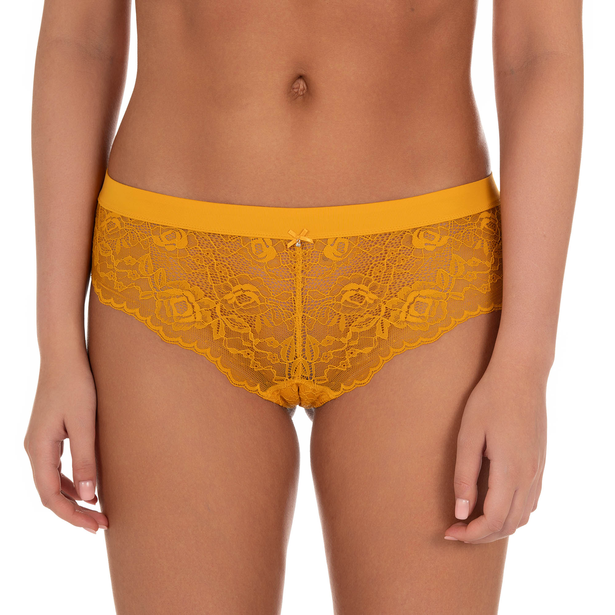 Die Panty Mona von bruno banani vereint sinnliche Spitze mit einem hohen Tragekomfort. Der breite, farblich abgestimmte Abschlussbund bietet sicheren Halt, während die halbtransparente Spitze eine zarte Optik zaubert. Das Schleifchen in der vorderen Mitte unterstreicht den femininen Stil. In den Farben Mondgrau und Curry erhältlich – perfekt abgestimmt auf den Push-Up-BH Mona für einen stilvollen Wäsche-Look.